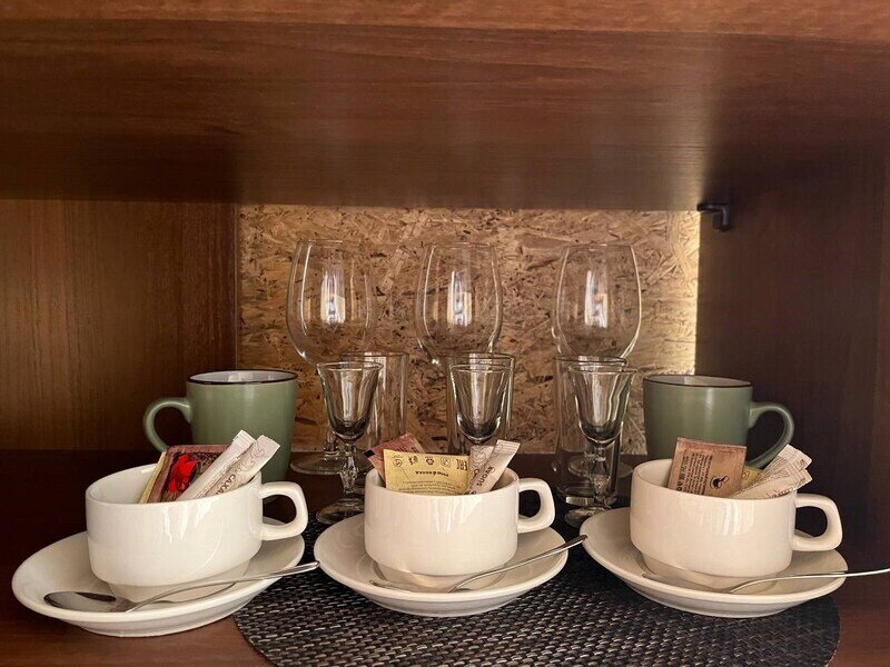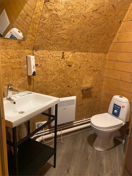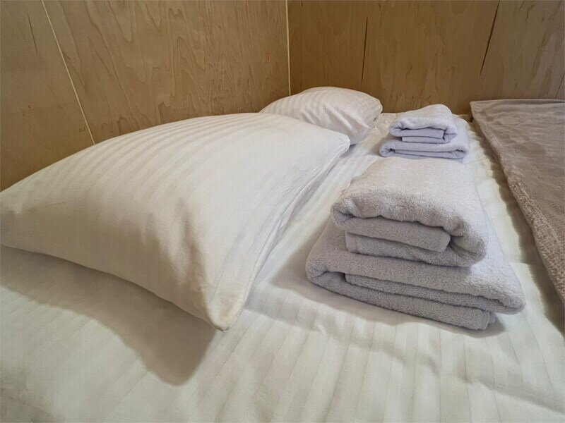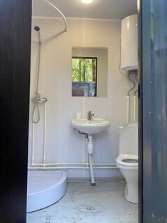 Выдается ключ от отдельно стоящего индивидуального санузла, находящегося в шаговой доступности, с горячей водой. В стоимость включены косметические принадлежности.