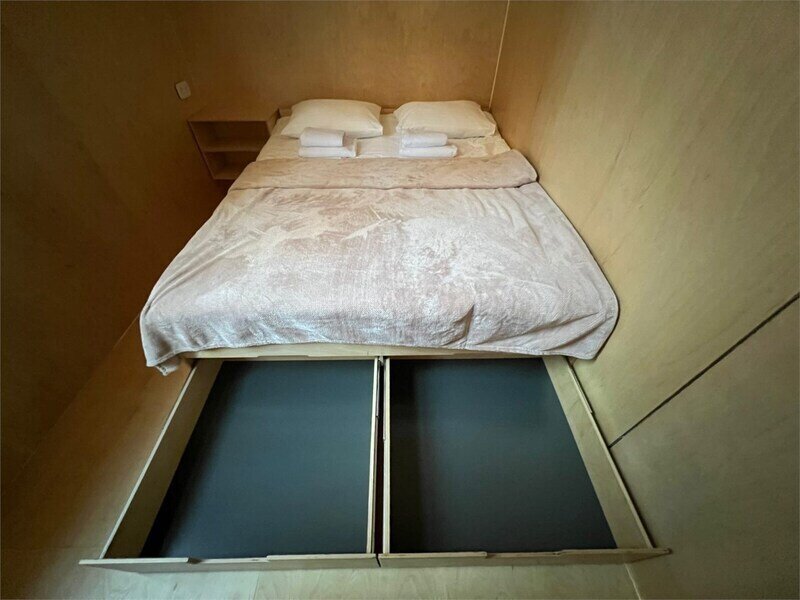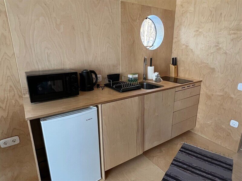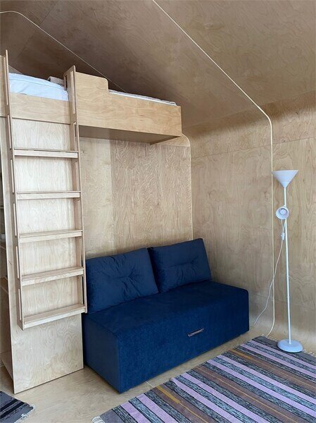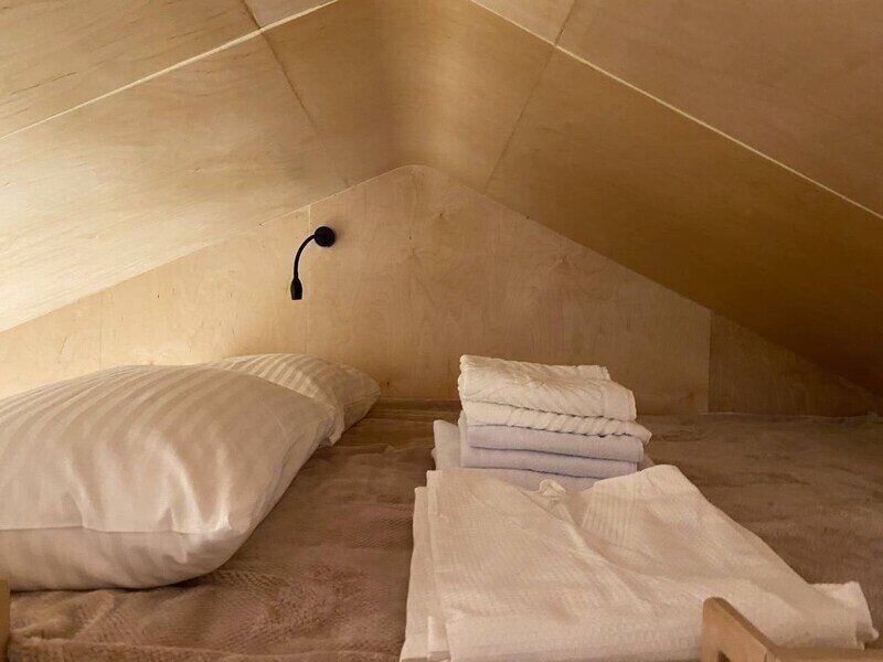 Вместимость дома — до 4х гостей: двуспальная кровать, выдвижная кровать, спальное место на втором ярусе.