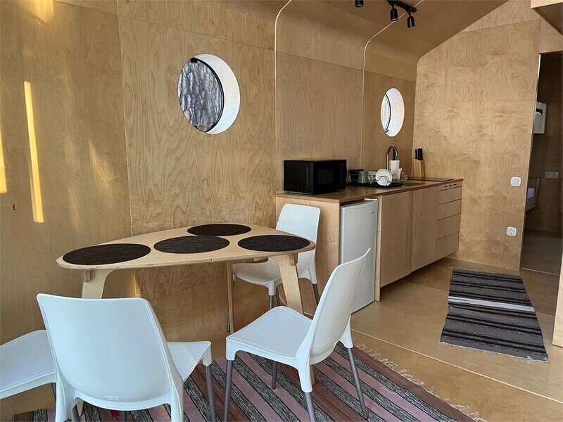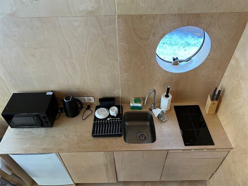 В доме есть всё необходимое для отдыха: душевая кабина, санузел, кондиционер, двуспальная кровать, холодильник и электричество. Прямо из-под одеяла через прозрачный купол вы сможете наблюдать потрясающие виды звездного неба и встречать рассвет.