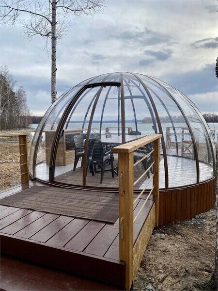 Находясь внутри беседки, вы будете наслаждаться прекрасным видом на природу курорта сквозь прозрачный купол.