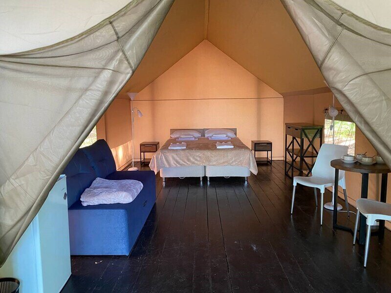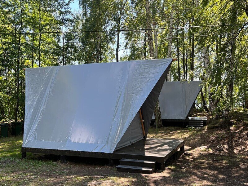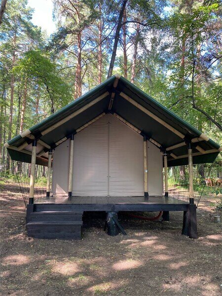 Летний комфортный глэмпинг палаточного типа, находится на первой линии.
