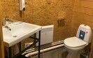 Туалет и душ расположены в отдельном строении, для каждого домика — свой санузел, запирающийся на ключ.
