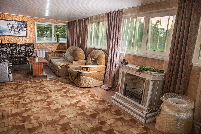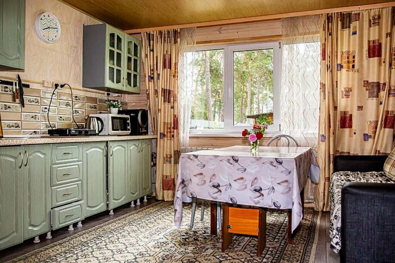 В доме есть все необходимое для комфортного проживания: 2 спальни, 2 двуспальные кровати, 2 раскладных дивана, зал с кухонной зоной, телевизор, чайник, холодильник, микроволновая печь, посуда, постельное бельё, санузел.