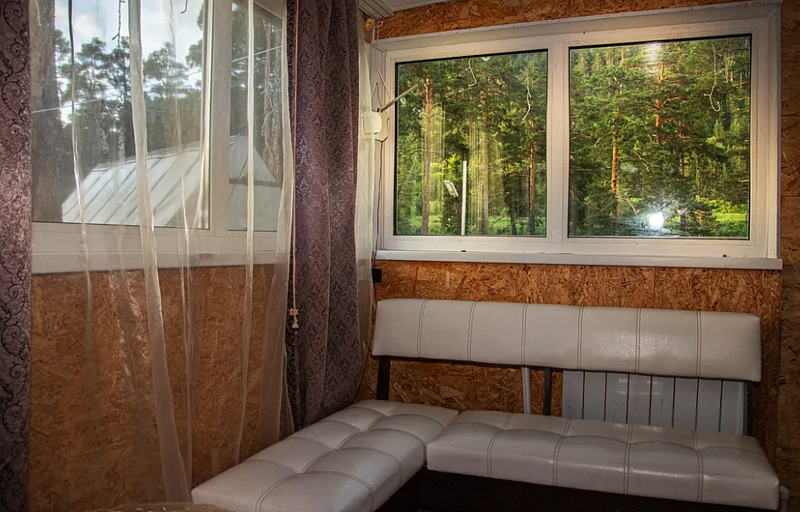 Большая тёплая и уютная терраса, где можно отдохнуть на мягких диванах.