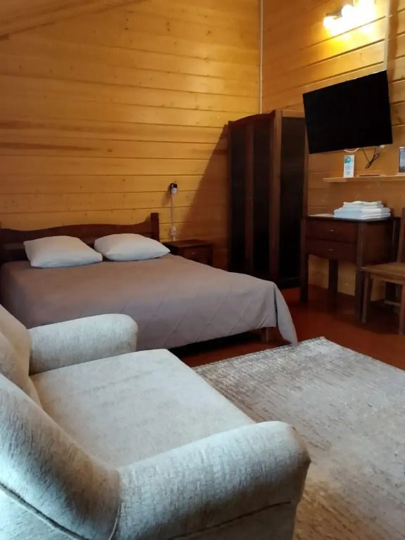 Комплекс выглядит в виде уютных коттеджей в деревенском стиле с номерами разных категорий для проживания. В качестве удобств гостям предлагаются мягкая мебель, телевизор, санузел, душевые и ванные комнаты.