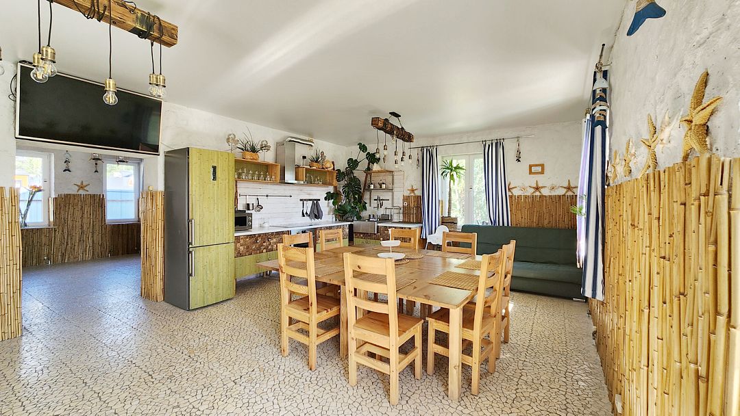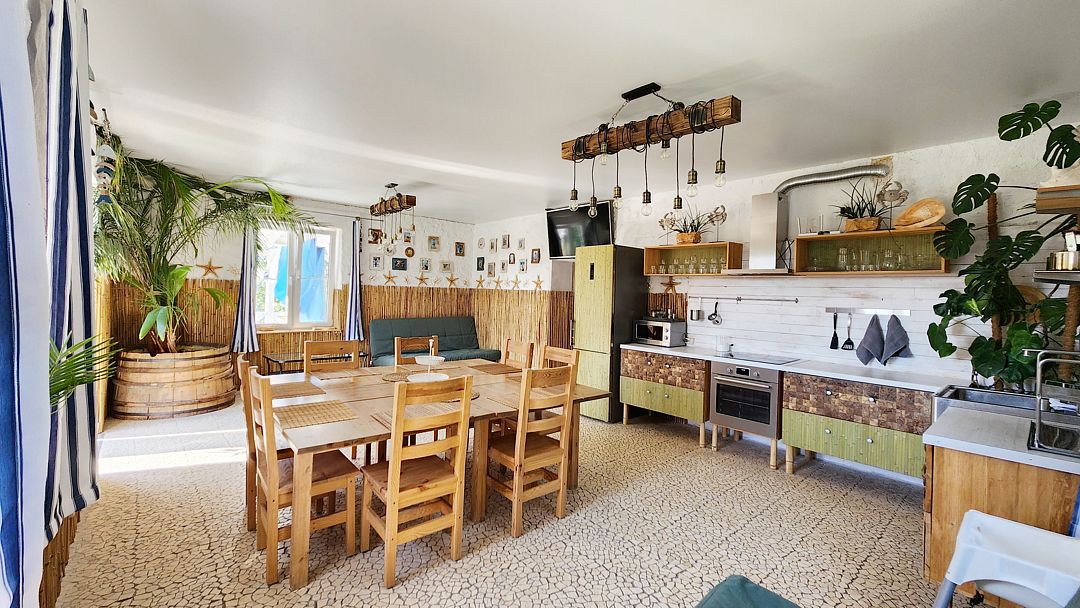 Гостевой дом «Тропик» — это уголок умиротворения, где тропические мотивы плавно переплетаются с морской свежестью, создавая уникальную атмосферу для отдыха в кругу близких. Просторные апартаменты рассчитаны на компанию до восьми человек и продуманы так, чтобы каждый гость почувствовал комфорт и гармонию.