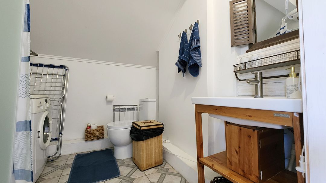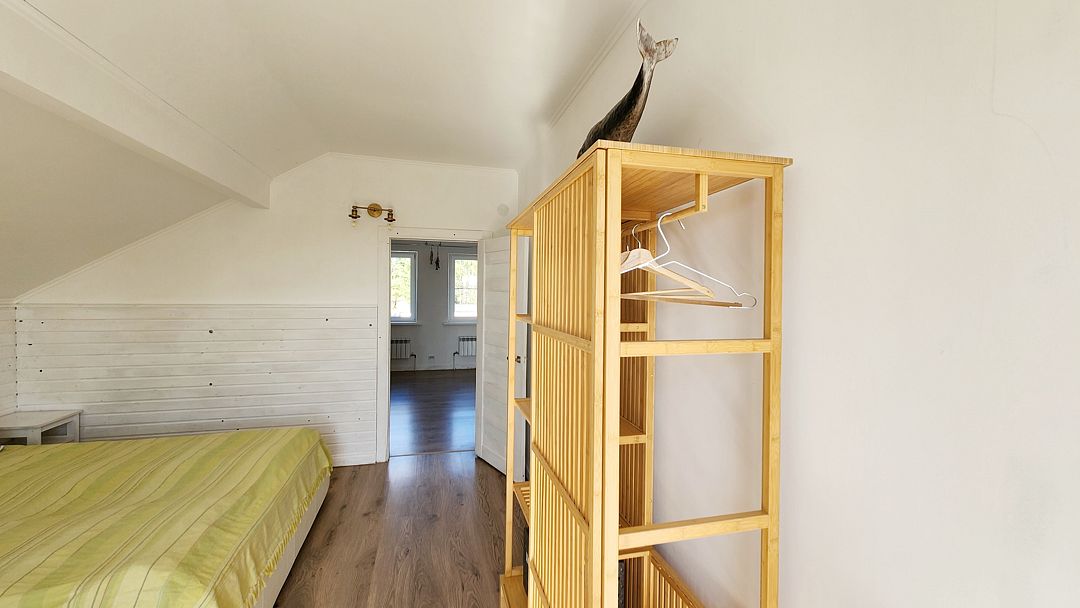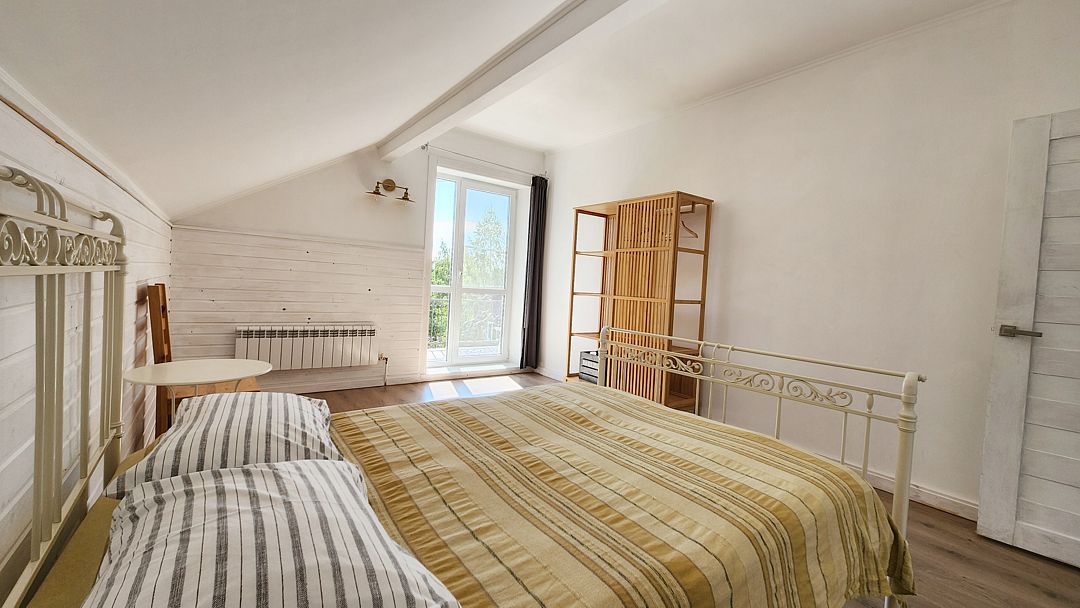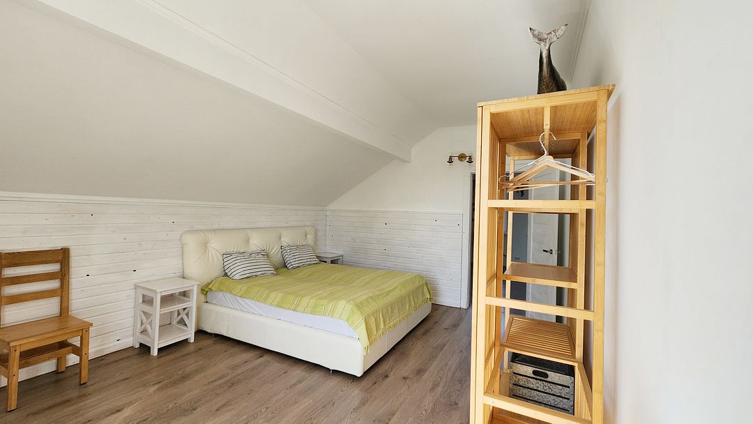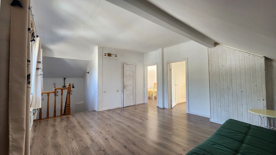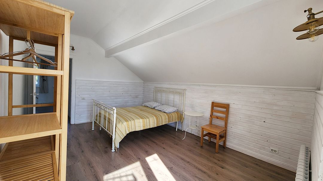Второй этаж: холл с двумя двуспальными диванами, две спальни, в каждой по одной двуспальной кровати, санузел с душевой кабиной и стиральной машиной.