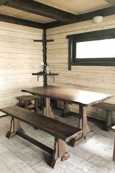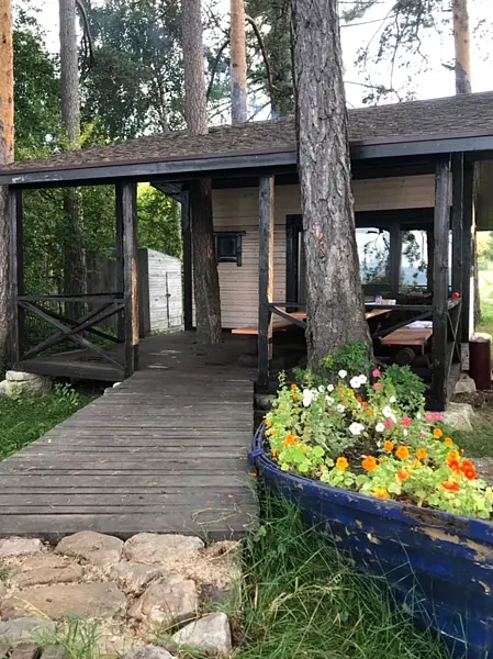 Расположенная на живописном берегу озера, баня с просторной верандой и уютной мангальной зоной приглашает окунуться в традиции оздоровительного и расслабляющего отдыха. Рядом расположен банный чан.