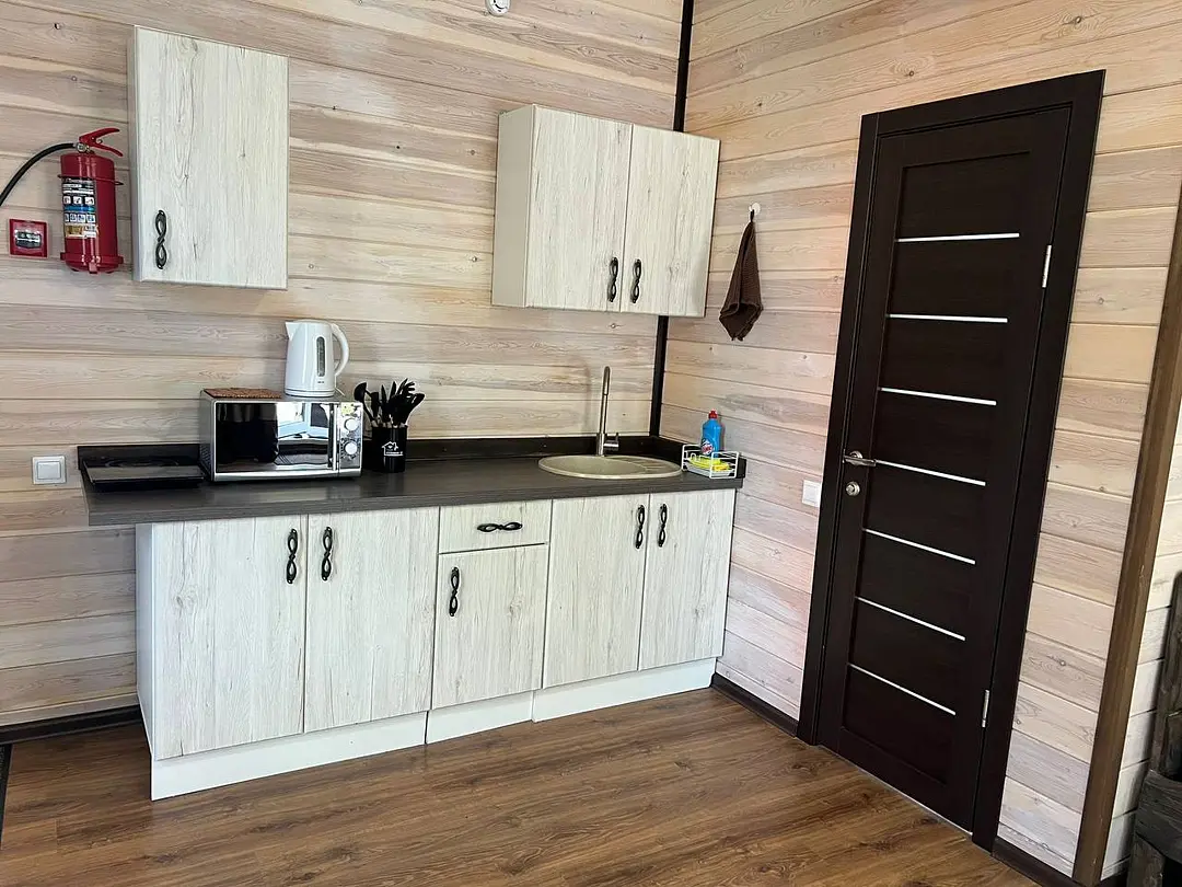 В доме имеется вся необходимая посуда для приготовления и приема пищи. Микроволновая печь, чайник, холодильник, телевизор, фен, wi-fi