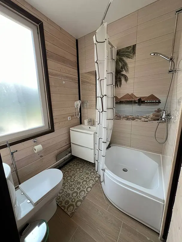 Не написано в коментариях, что рядом, в 30 метрах от домиков идёт строительство новой турбазы с использованием КАМАЗов, экскаваторов. Прокладывается вдоль дороги к шале трубопровод. Положительный момент, что техника начинала работать после 10 утра.