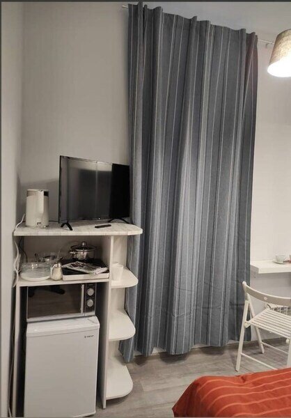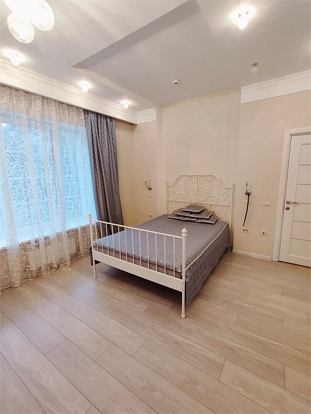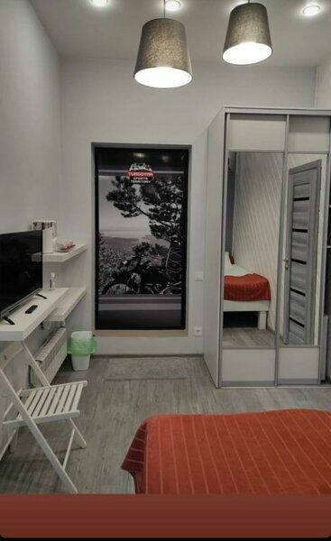 Комфортно разместиться в апартаментах студия смогут 2 человек (двуспальная кровать).