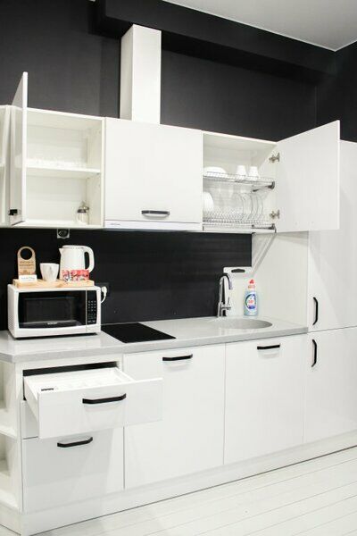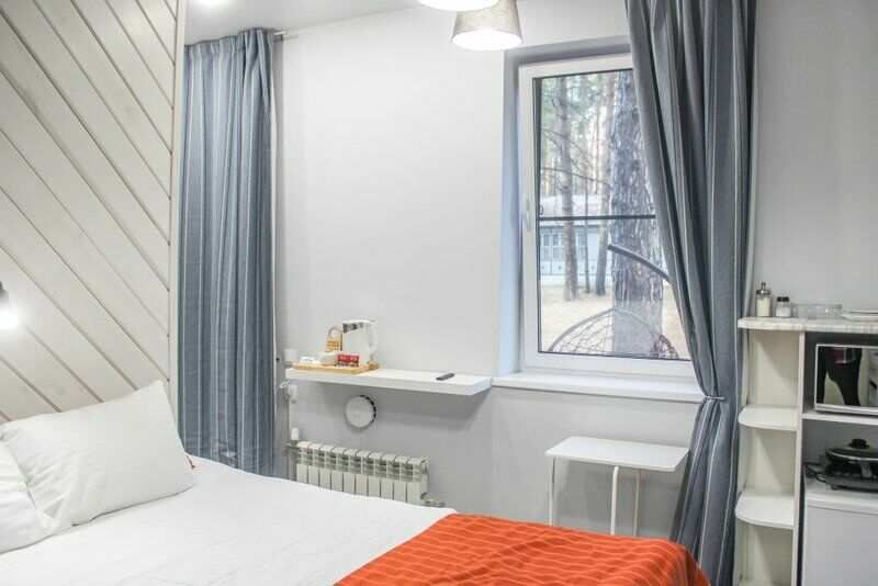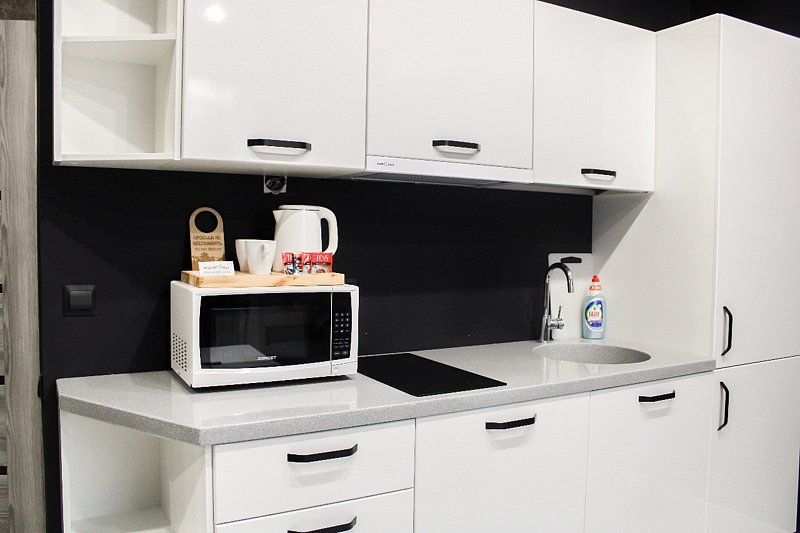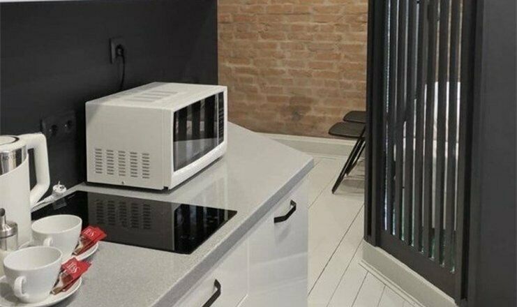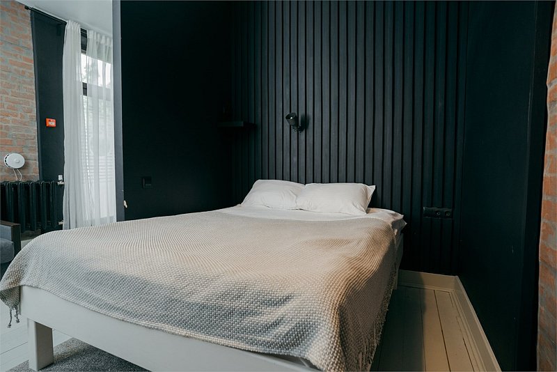 Комфортно разместиться в апартаментах студия смогут 2 человека (одна двуспальная кровать).
