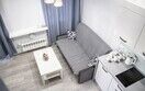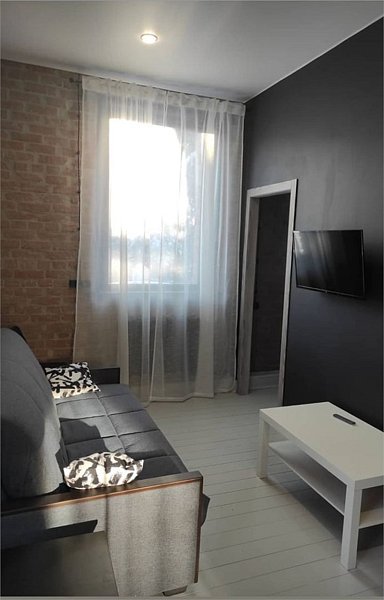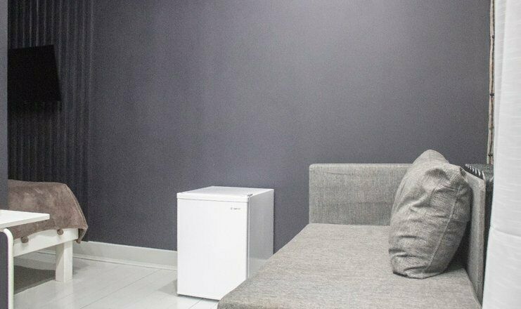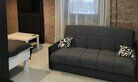 Комфортно разместиться в апартаментах студия смогут 3 человек (двуспальная кровать и раскладной диван).