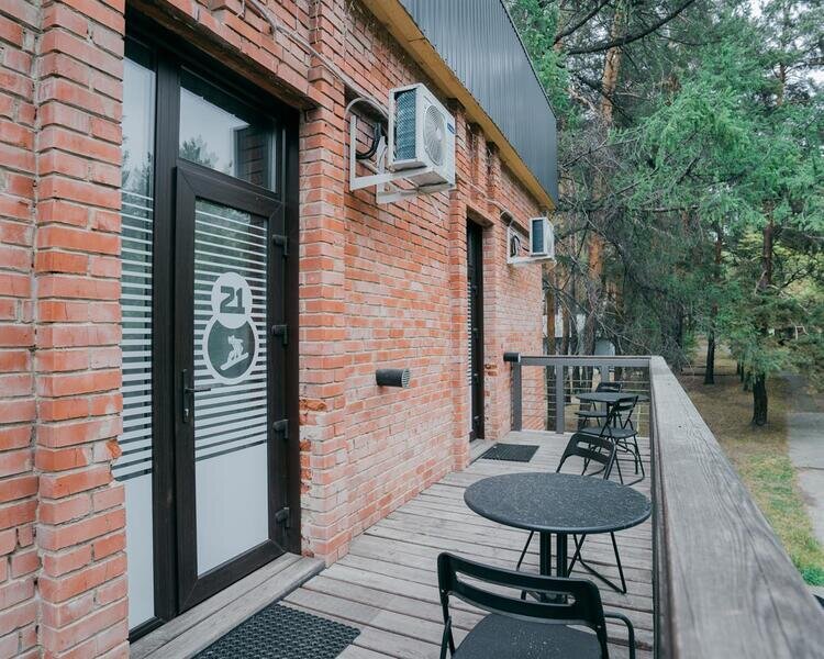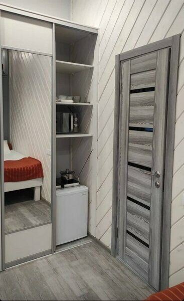 Номера в корпусе бывшего детского лагеря. Все удобства на этаже: общая кухня, сан. узлы, душевые + умывальники.