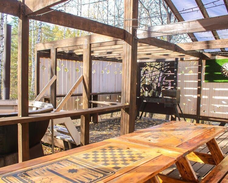 На территории комплекса есть парковка, баня с чаном и мангальные зоны. Работает Wi-Fi сеть.