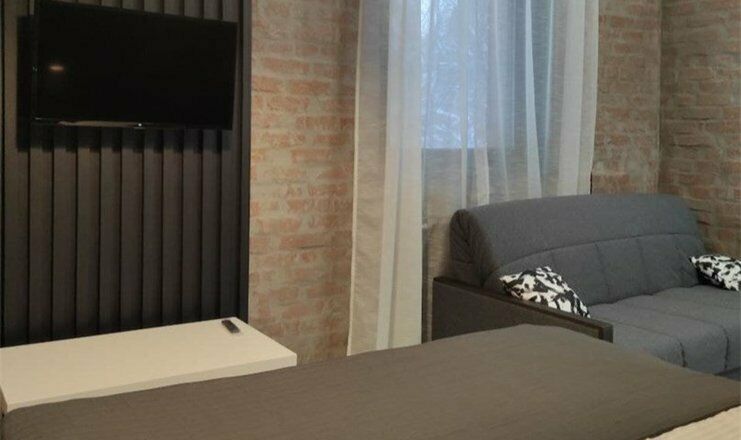 Комфортно разместиться в апартаментах студия смогут 4 человека (двуспальная кровать и раскладной диван).