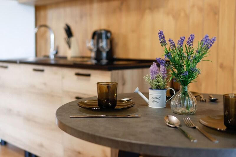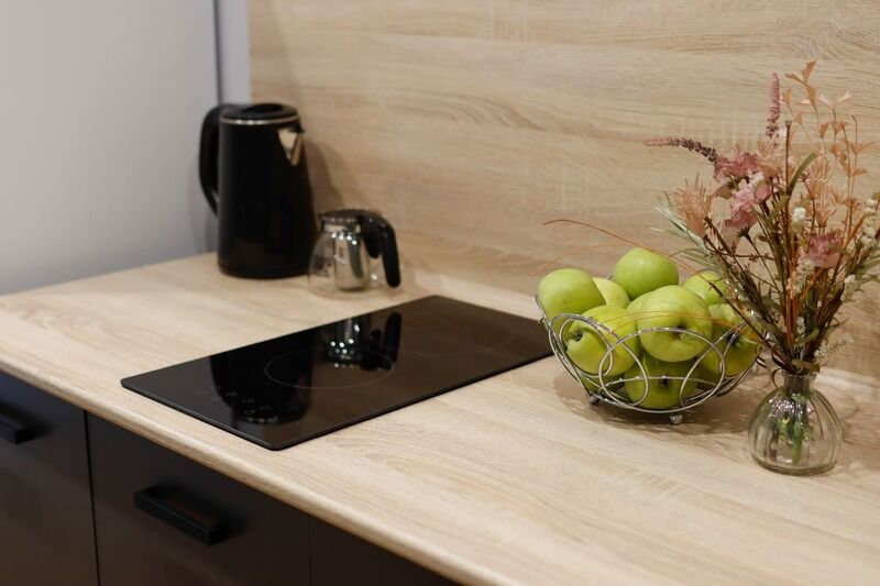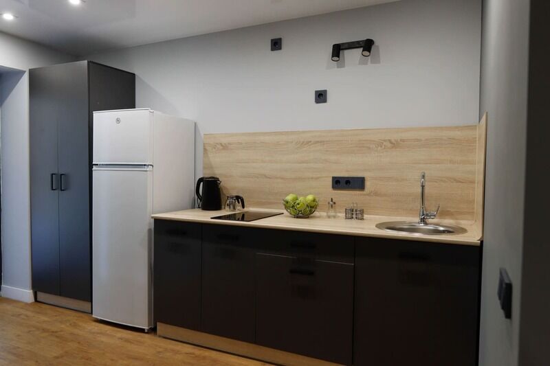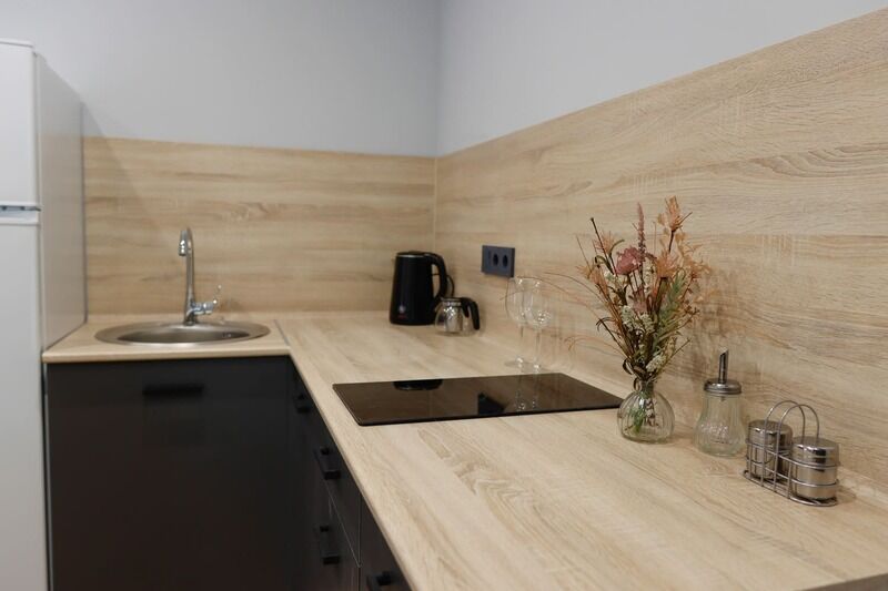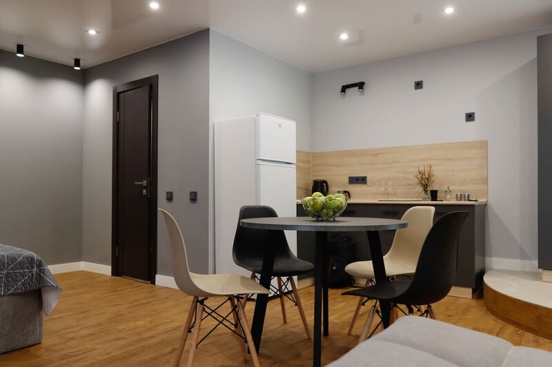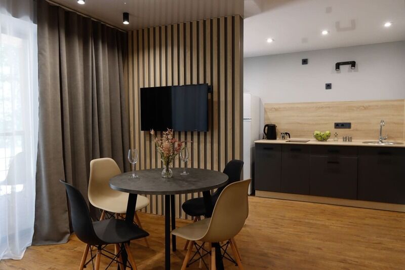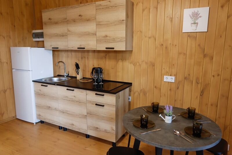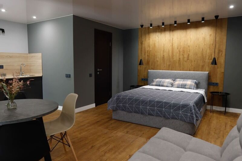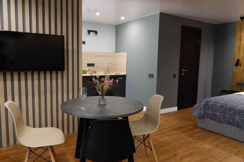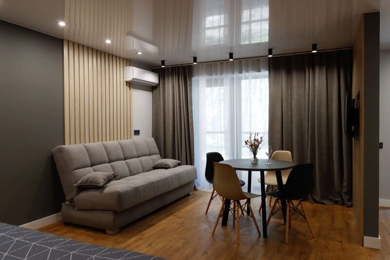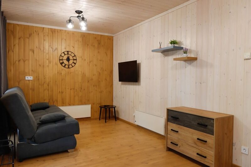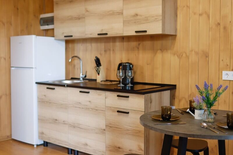 В номере есть: ванная комната с душем и туалетом, диван кровать в гостиной, одна большая кровать , постельное белье, полотенца, телевизор, кондиционер, кухня с варочной поверхностью, вся необходимая посуда и приборы для приготовления пищи.