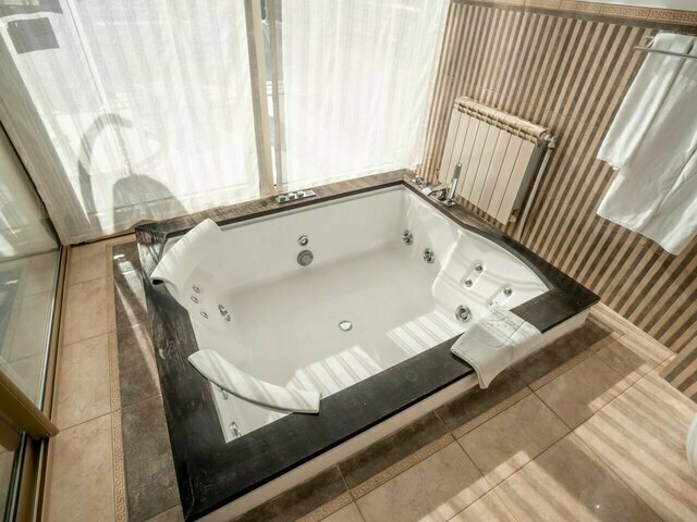 Сауна оборудована большим бассейном, душевыми с обливным устройством, просторной комнатой отдыха с мягкими диванами и столиком для приятного времяпровождения.