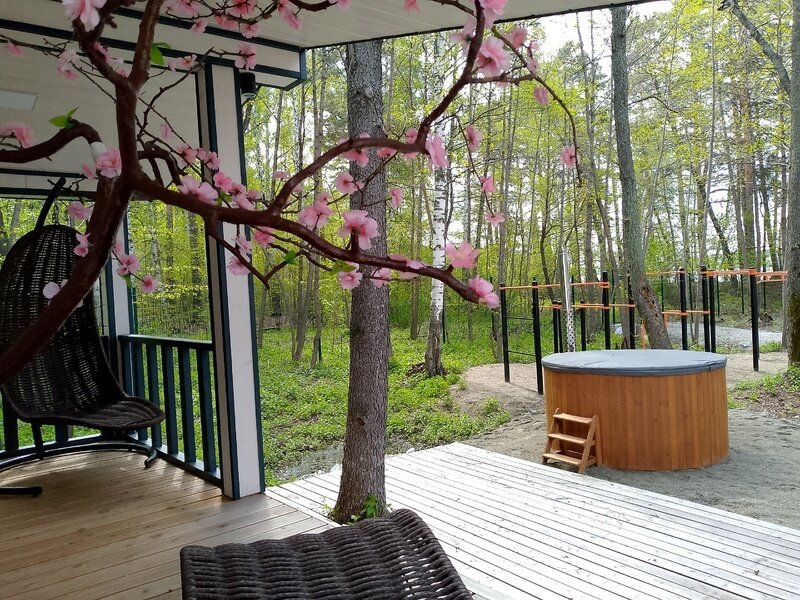 двуспальная кровать, кухня (Х, плита), ТВ, с/ душ, терраса с мебелью