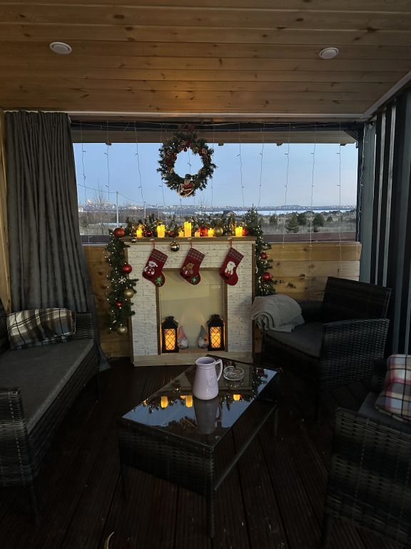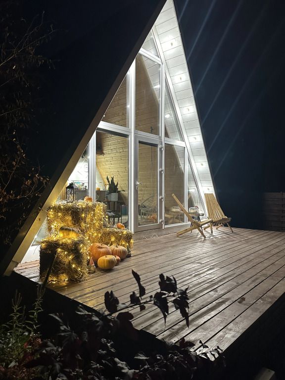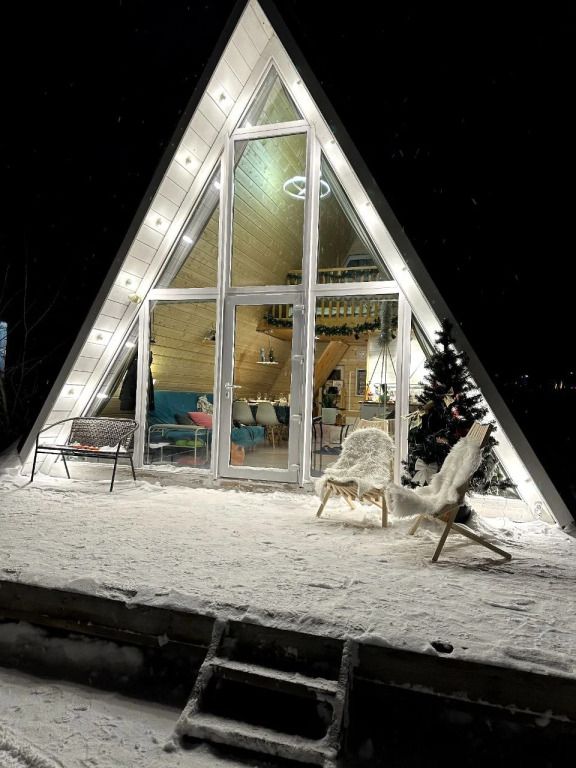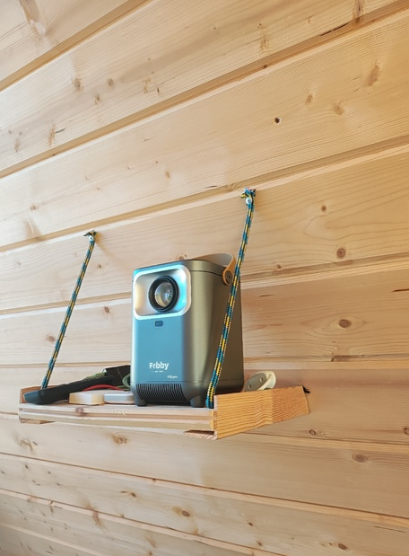 В домике установлен проектор, подключенный к интернету. Можно создать кинотеатр прямо в домике.