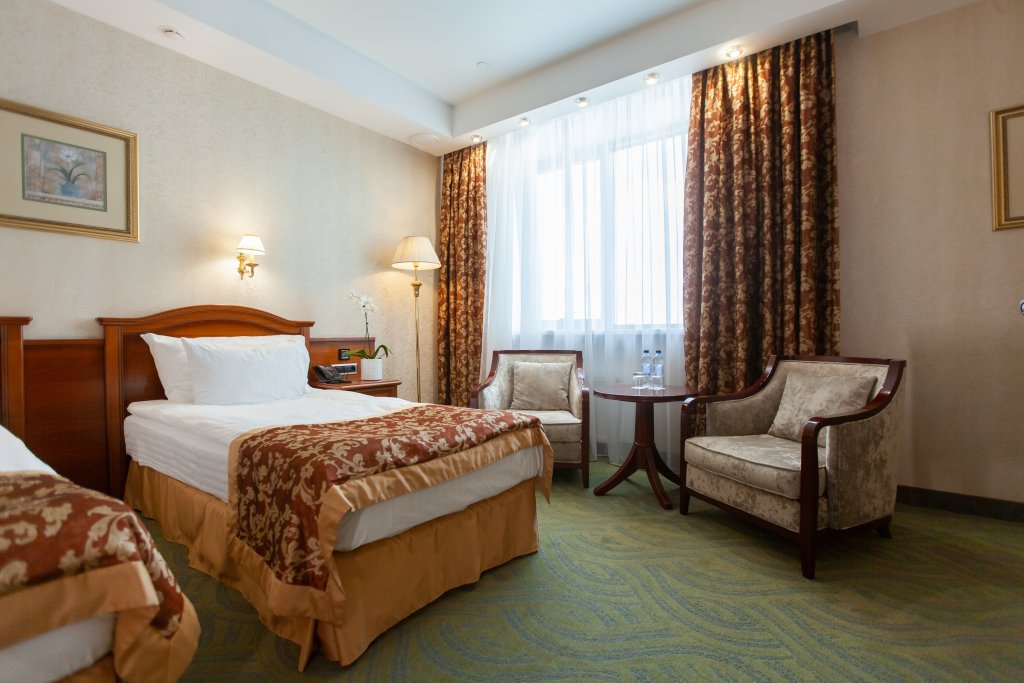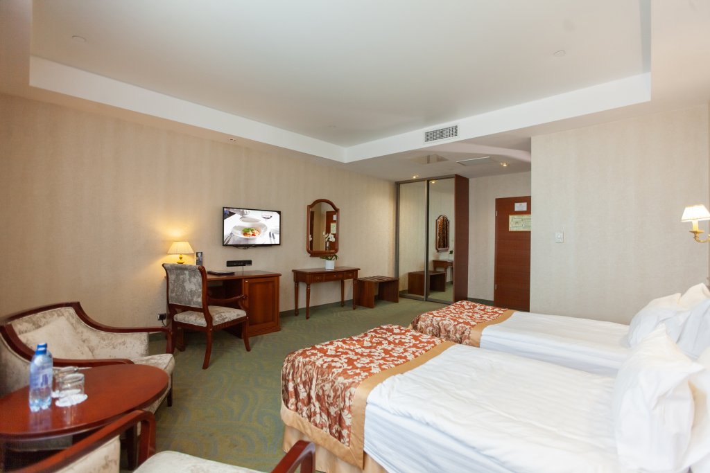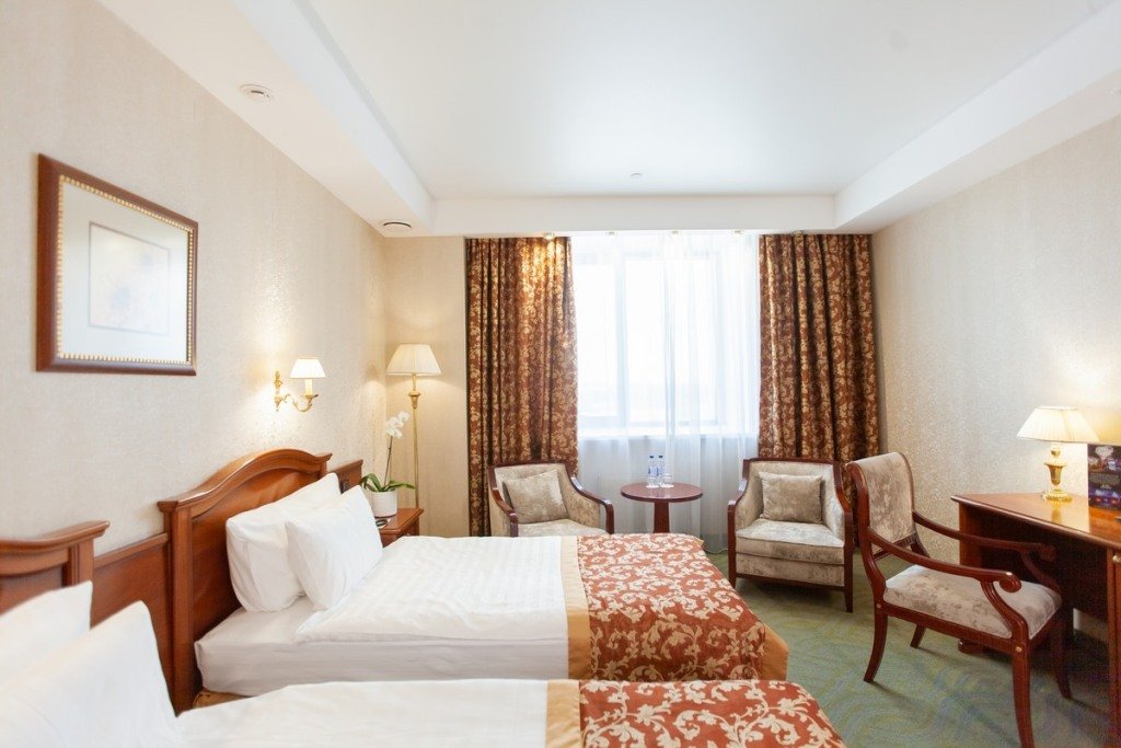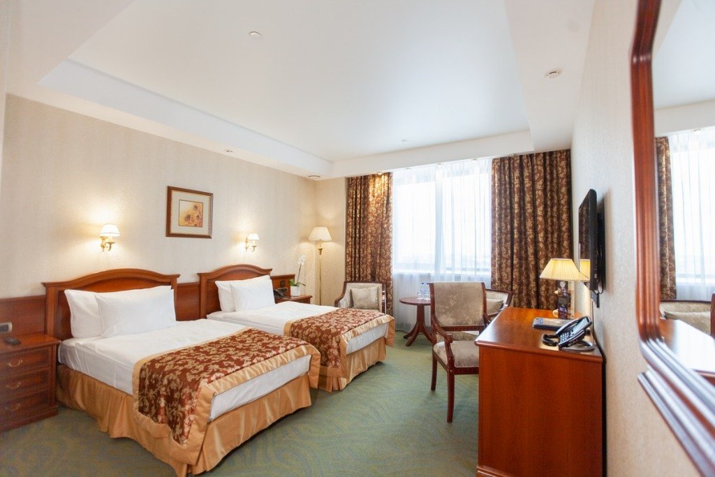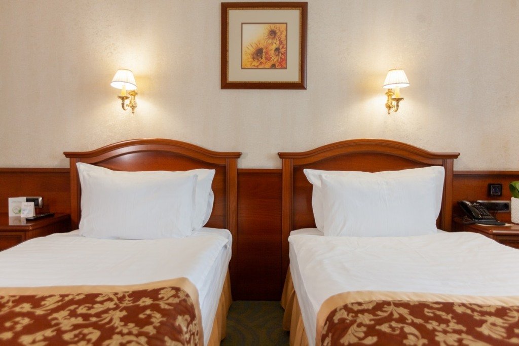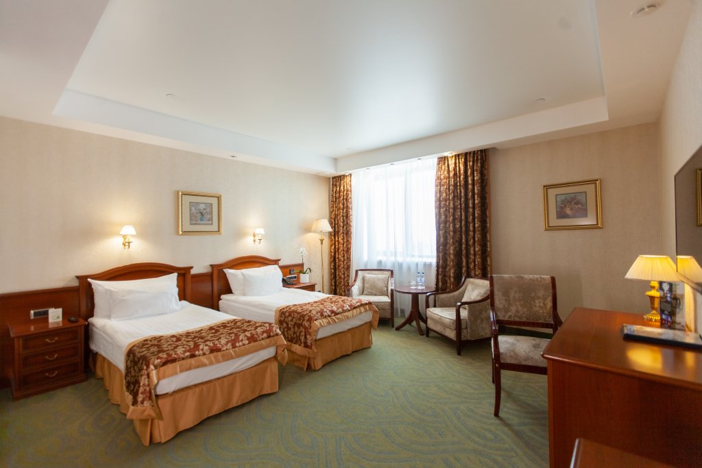 Комфортабельный номер расширенной площади с двумя отдельными кроватями и эргономичной рабочей зоной.