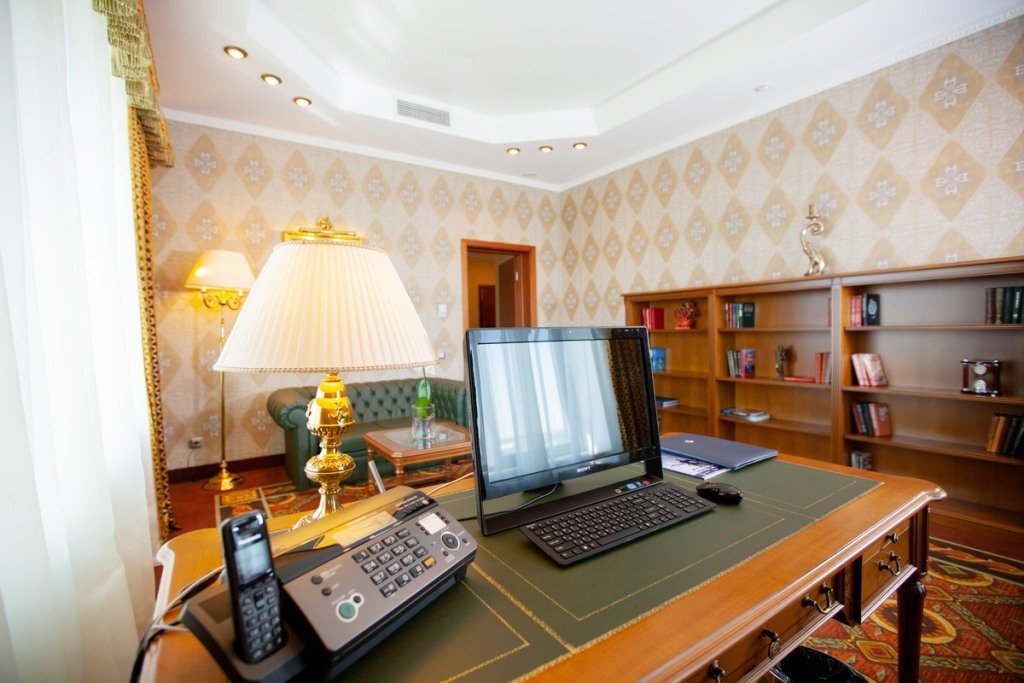 Элегантный номер с одной двуспальной кроватью queensize и эргономичной рабочей зоной.