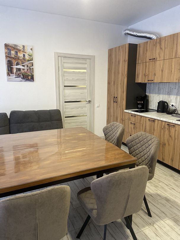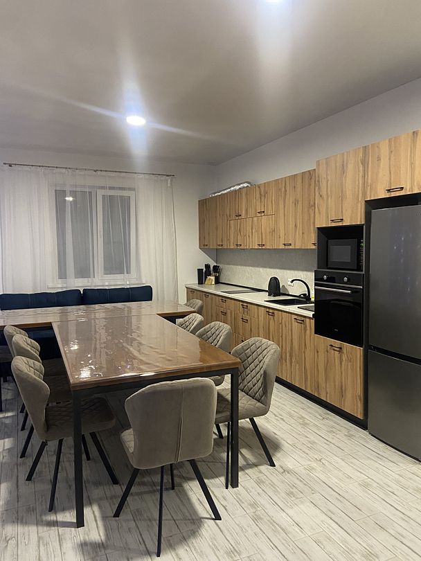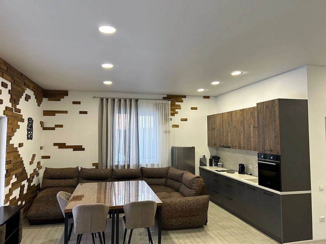 В каждом доме есть просторная гостиная-кухня: идеально подходит для семейных вечеров и дружеских посиделок. Вы сможете приготовить любимые блюда на полностью оборудованной кухне и насладиться ими, выйдя на собственную уютную террасу.