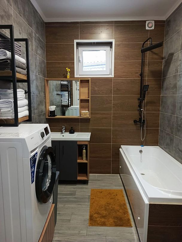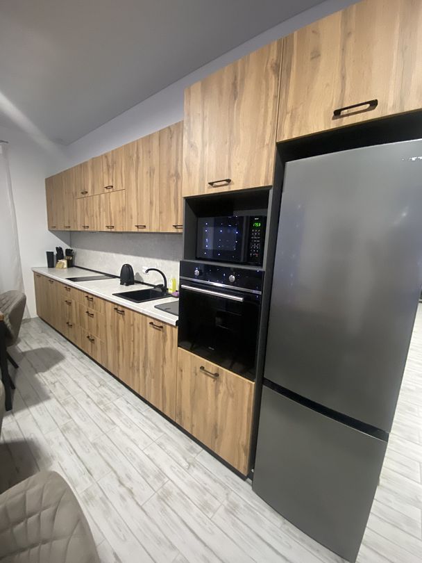Вас ждет полный набор современной бытовой техники: телевизор, холодильник, микроволновая печь, духовой шкаф, варочная панель, посудомоечная и стиральная машины, чайник, утюг и фен. Здесь позаботились о каждой мелочи, чтобы ваш отдых был максимально комфортным. В вашем распоряжении также полный набор столовой и кухонной посуды, включая бокалы и качественную посуду для приготовления пищи.