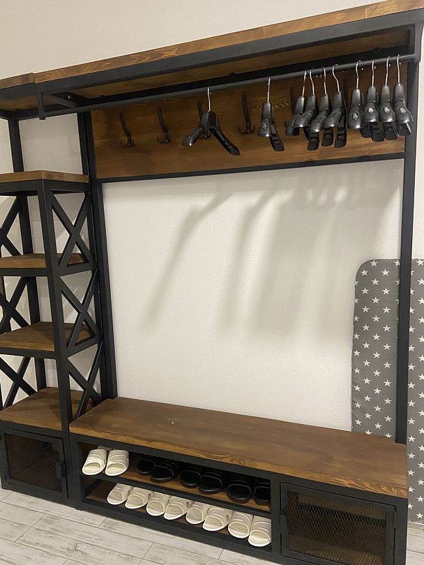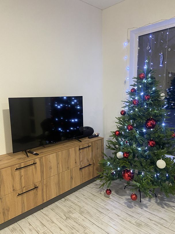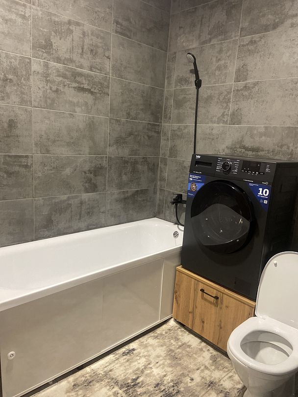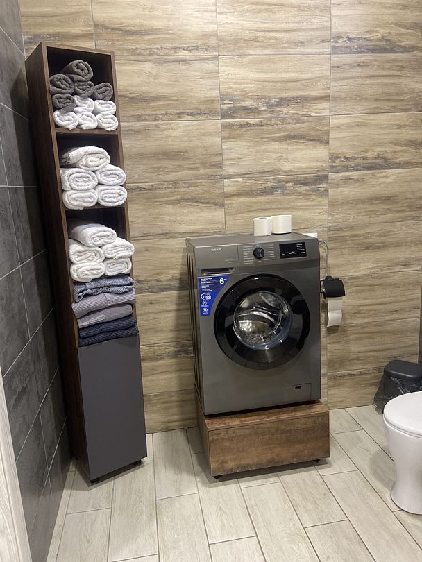 - весь набор бытовой техники: ТV (кабельное), музыкальная колонка, посудомоечная машина, холодильник, духовка, плита, микроволновка, утюг с доской, сушилка для белья, стиральная машина, кухонная вытяжка, чайник, фен.