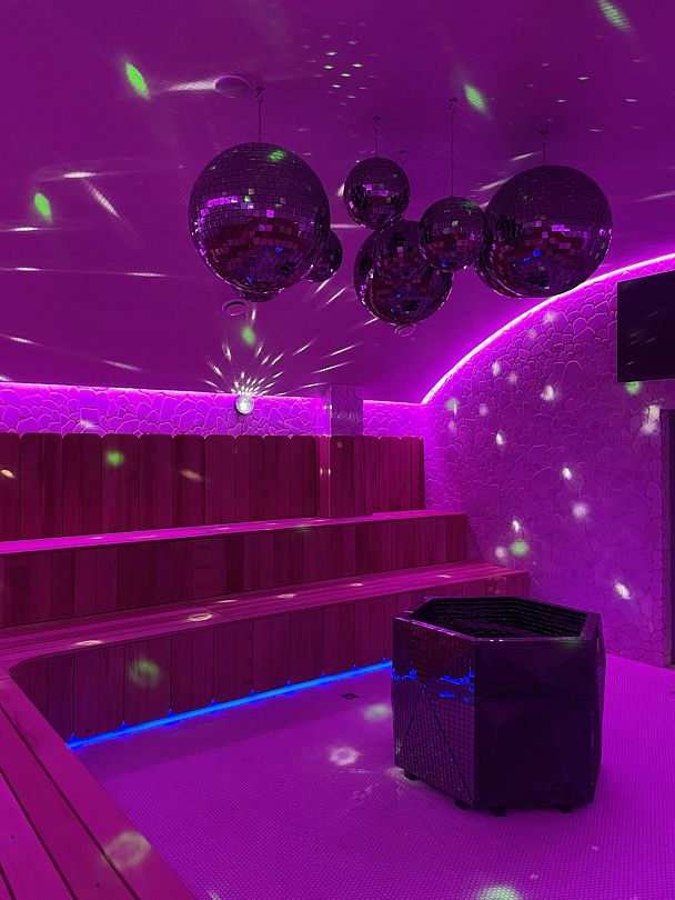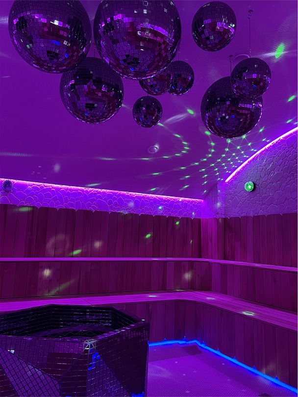 Читать полностьюОбновленная тематическая сауна с деревянной отделкой из натуральной липы, оригинальной диско-печью, декором из диско-шаров, светомузыкой и караоке-системой прямо в сауне!