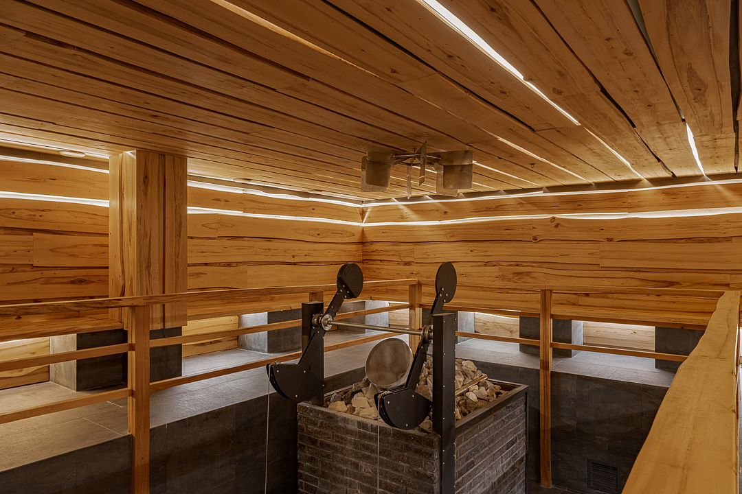 Читать полностьюУличная сауна расположилась прямо возле открытого термального бассейна, чтобы вы могли чередовать посещение парной с водными процедурами. Температура: 75-90. Влажность: 10%. Оптимальное время нахождения: от 15 до 20 минут. Вместимость: до 60 человек.