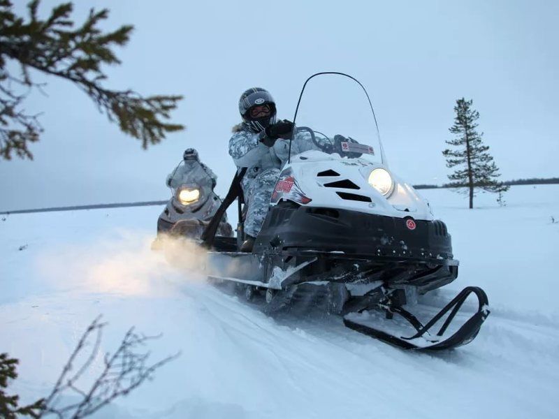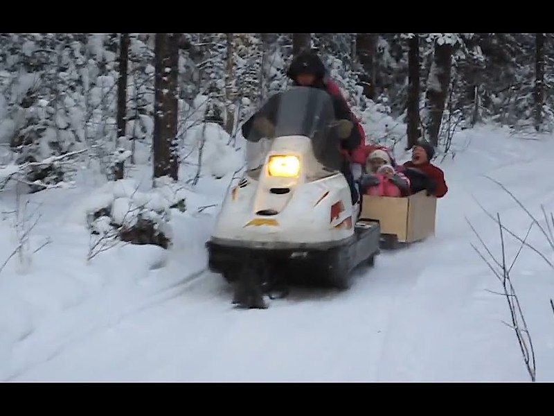 Катание на снегоходе по зимнему лесу - это одна из любимых всеми забава. К снегоходу крепятся сани, которые могут погрузить на себя от 2-х, до 4 человек.