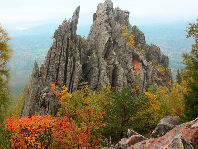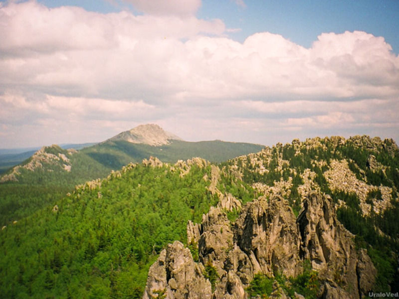 На вершине горы открывается вид сразу на 2 хребта национальных парков "Таганай" и "Зюраткуль".