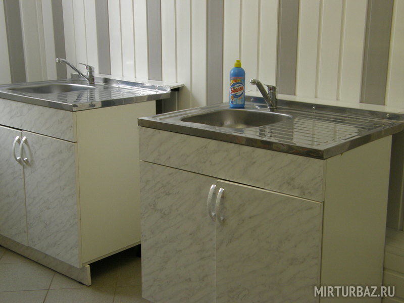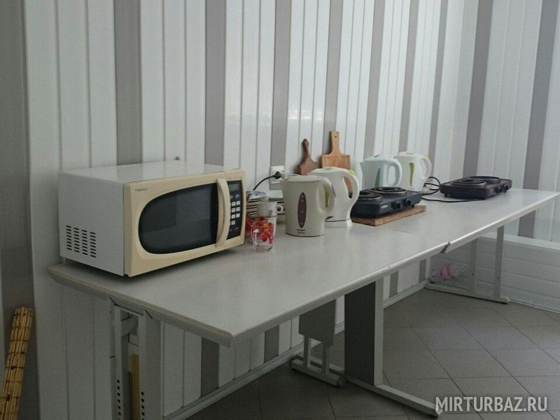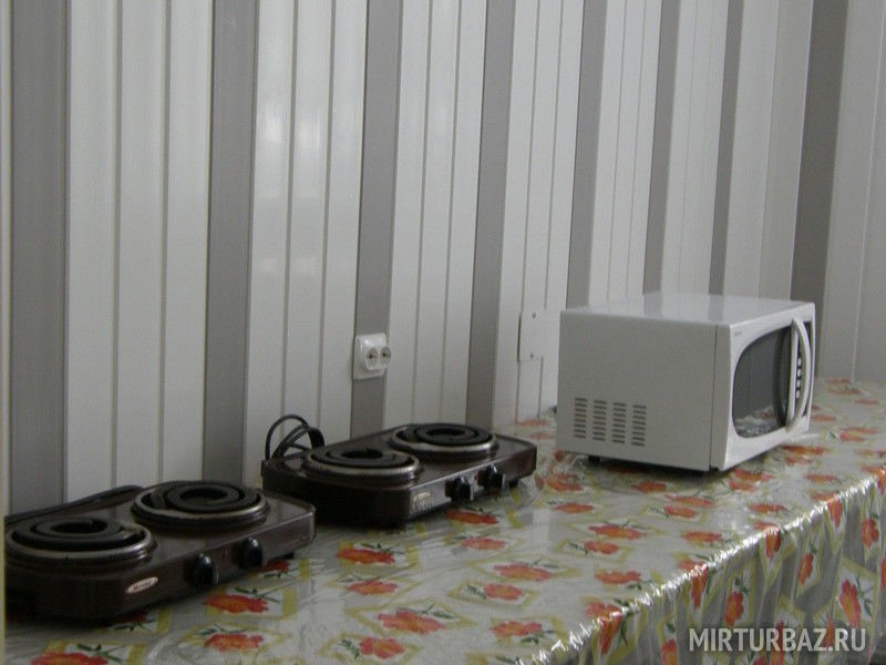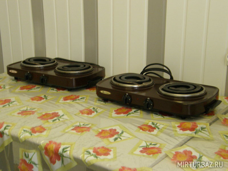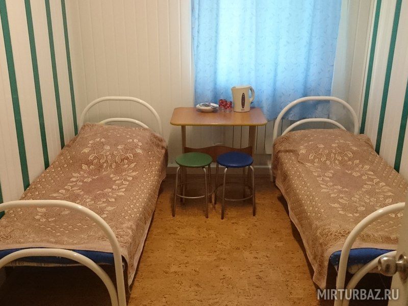 В номере 2 раздельные кровати, холодильник, чайник, электроплита, набор посуды, стол, табуретки.