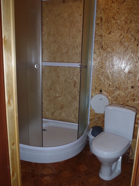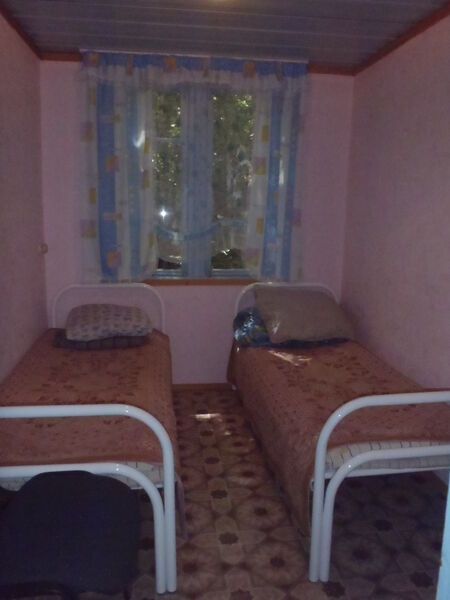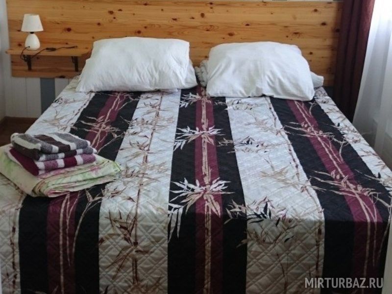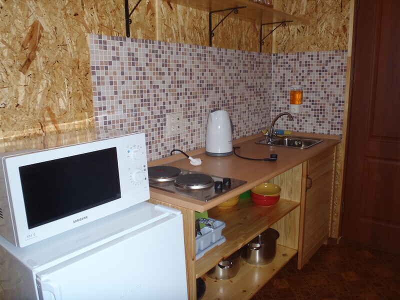 В домиках 2 раздельные кровати, тумба, прихожая с вешалкой, небольшая кухонная зона (стол, табуретки, холодильник, чайник, электроплита, набор посуды), удобства на территории.