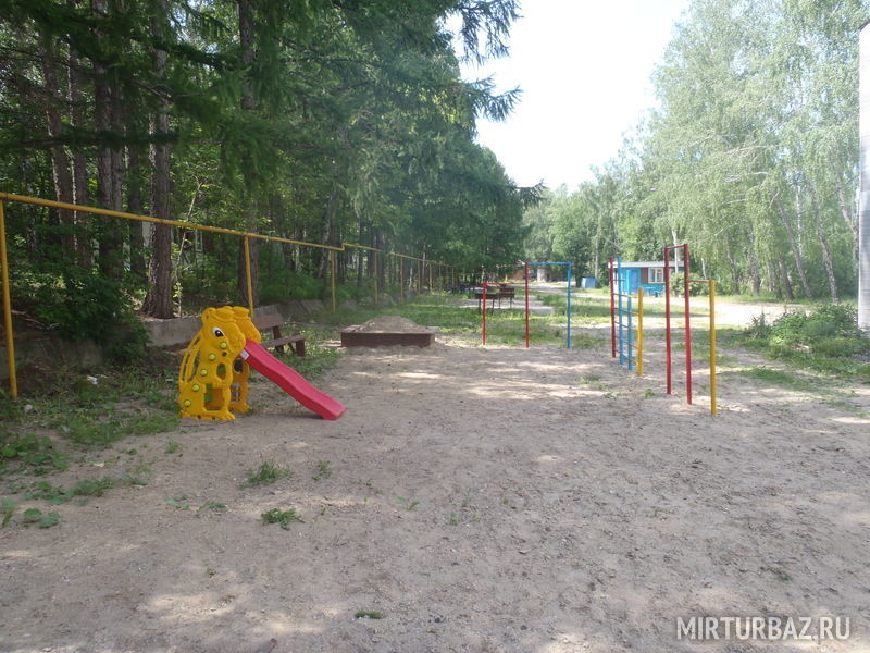 На территории оборудована игровая площадка с различными активностями, которые не дадут детям скучать.