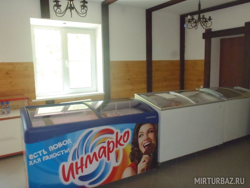 На базе отдыха работает продуктовый магазин, где гости могут купить необходимое.