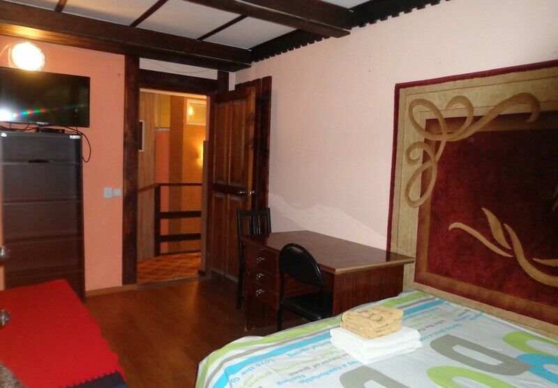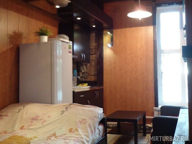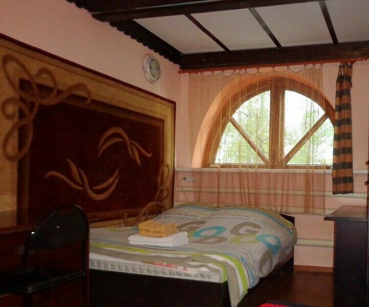 Состоит из двух изолированных комнат: спальни и спальни-гостиной. В спальне: двуспальная кровать, шкаф, столик, телевизор со спутниковым ТВ.