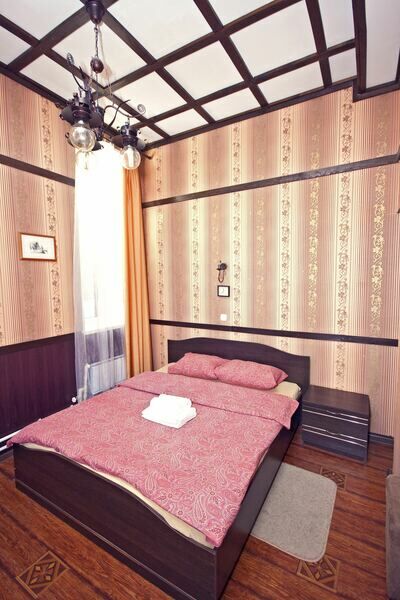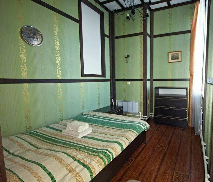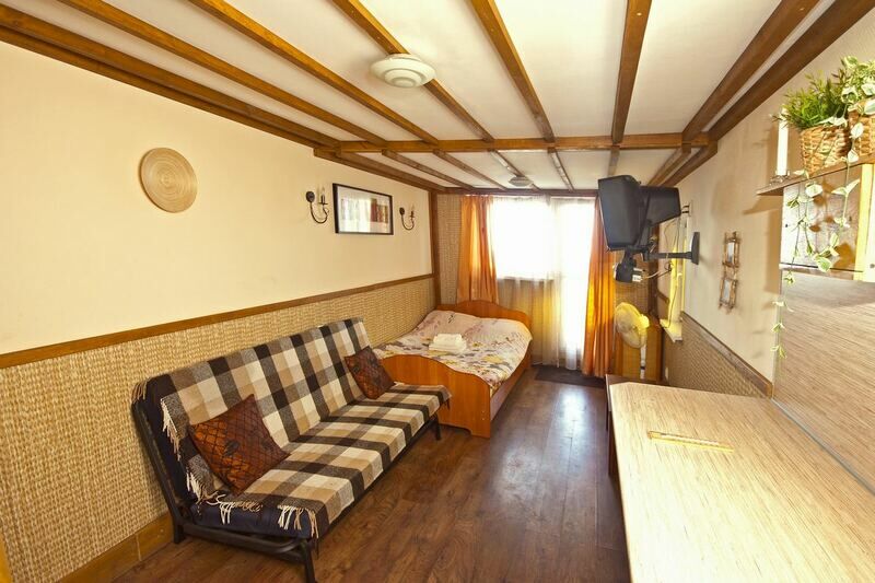 В номере: двуспальная кровать, раскладной двухместный диван, комод, журнальный столик, телевизор со спутниковым ТВ.