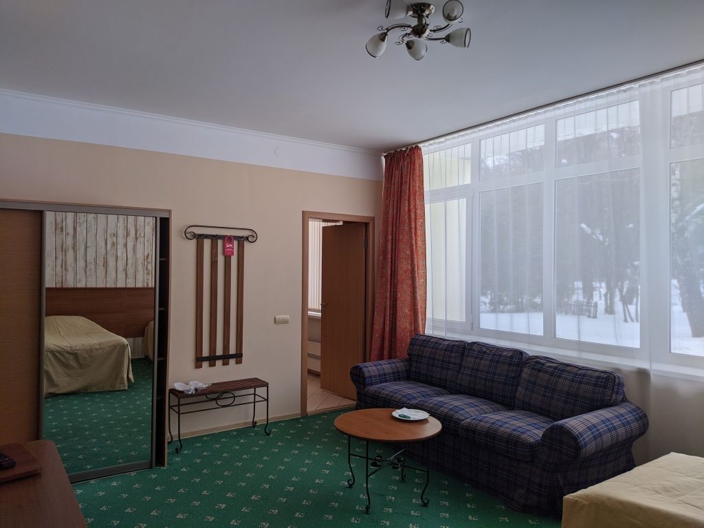 Номер разделен на гостиную , спальную, кухонную зоны. Уютный номер для размещения одного, двух или трех человек.