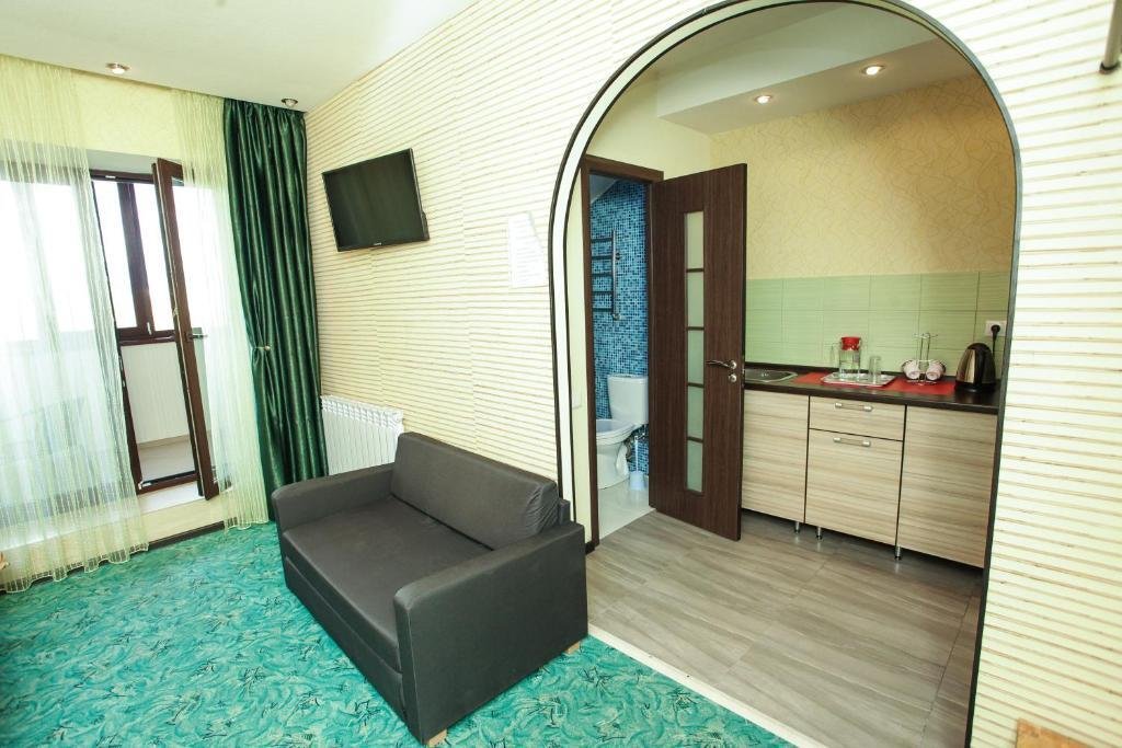 Путешествие с семьейпоездка на родину4-х местный номер, со своей ванной, телевизор. Не хватало в комнате по тумбочке у кровати, вместо кресел вполне можно поставить. Были в жару, даже с отрытыми окнами - душно. Спасались, тем что почти все время ездили по городу. Все как дома, на кухне можно приготовить, поесть есть и холодильник и все необходимое. Персонал приветливый. Место удобное если на машине - закрытый двор. И еще - нужен лифт, отель на 4 этаже и тяжко подниматься. На машине удобно, рядом большой супермаркет и можно найти приличное кафе.