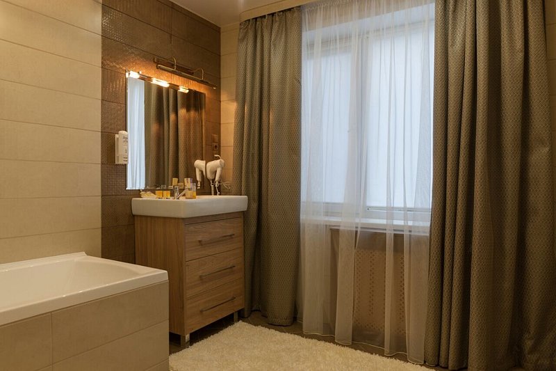 Санузел с ванной, двуспальная кровать (трансформер), диван, ТВ, кондиционер, холодильник, сейф