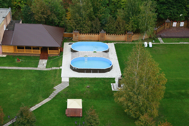 - в летнее время: шезлонги, полотенца, зонтики, зимой: каток и ледяная горка