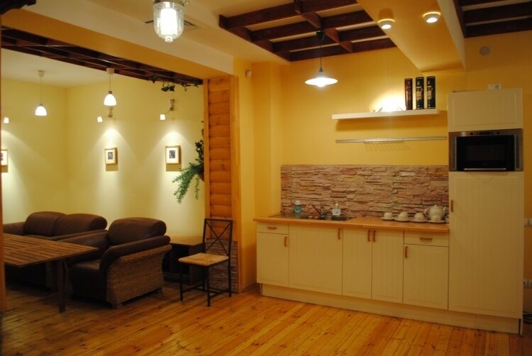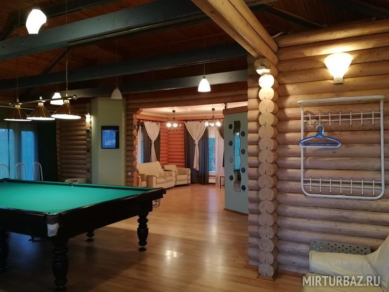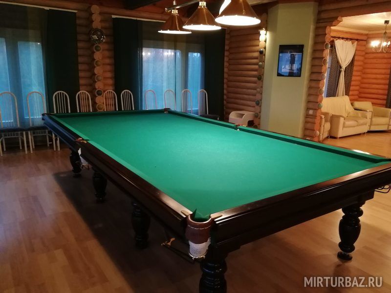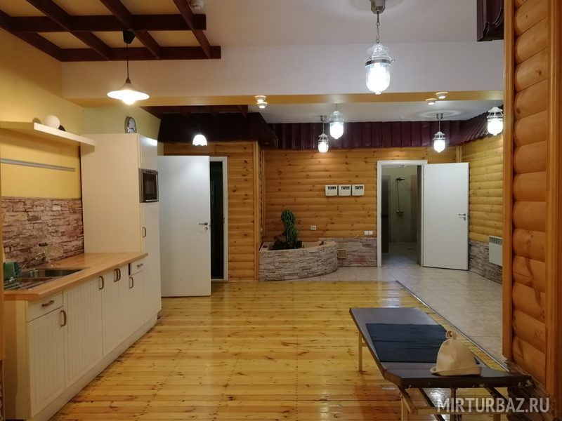 большая сауна с просторными апартаментами для отдыха, бильярдом, столовой зоной, мини-кухней, купелью из сибирского кедра. Парная рассчитана на одновременное посещение 10 человек. В апартаментах одновременно может находиться до 15 человек.