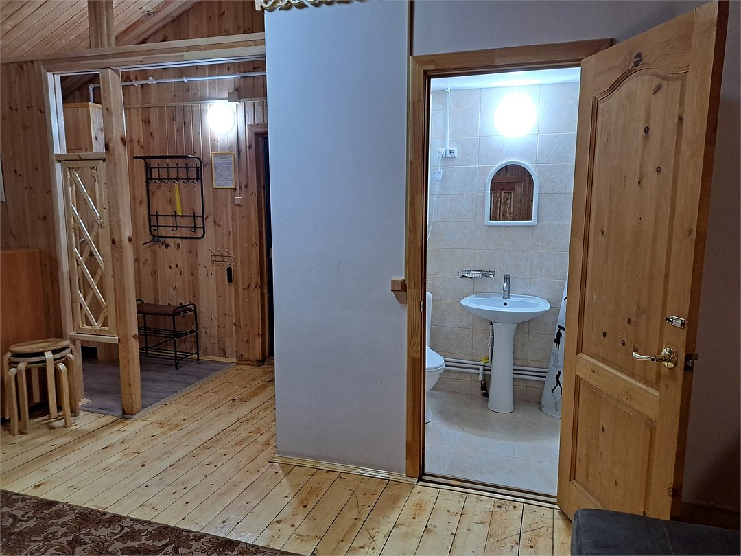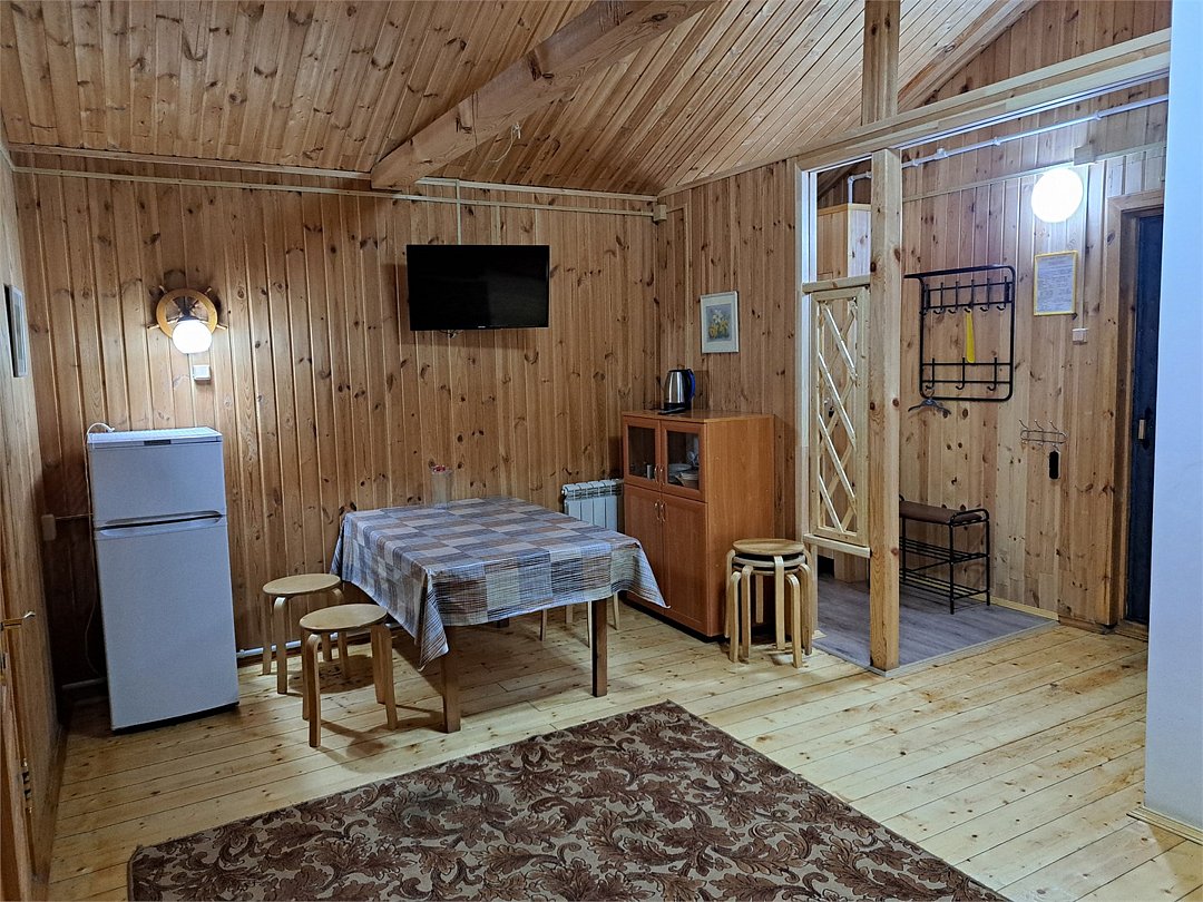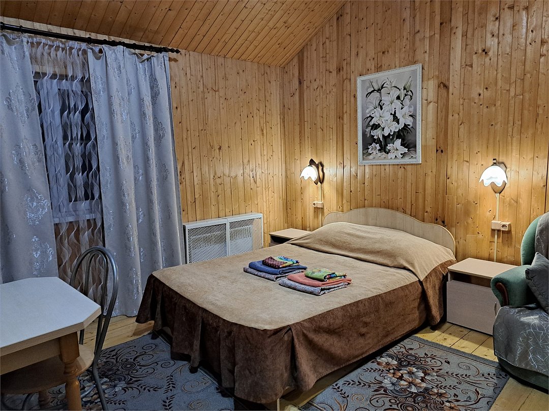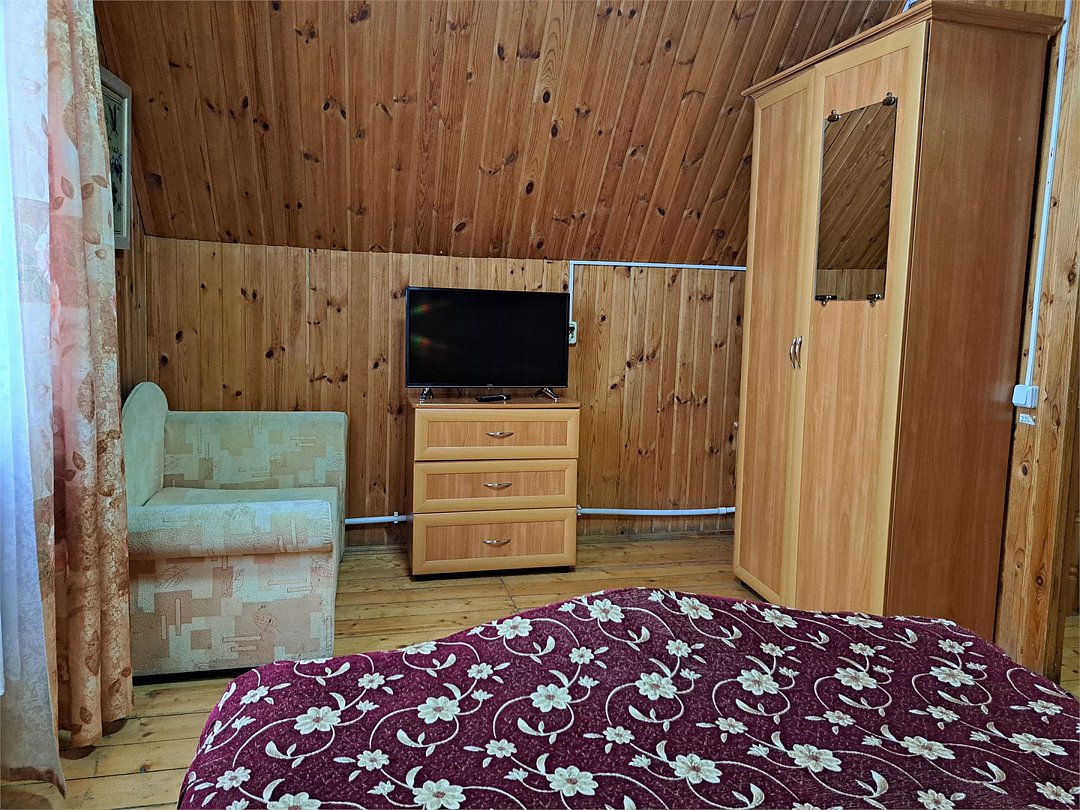 Номер в двухэтажном отапливаемом деревянном доме. У дома мангальная площадка с навесом. Холодильник на 4 номера. В номере: TV, санузел, горячая и холодная вода, душ, две односпальные кровати.Услуги и удобства
