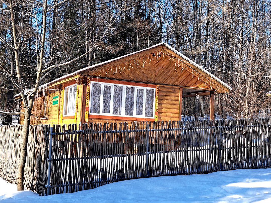 Деревянный отапливаемый домик. Один этаж. Одна комната с двухспальной кроватью, веранда, холодильник, душ, санузел, ТВ, wi-fi. Мангал, территория домика огорожена плетнем. *На веранде располагается кресло-кровать. В летний период используется, как дополнительное спальное место (700 рублей за ночь).Услуги и удобства