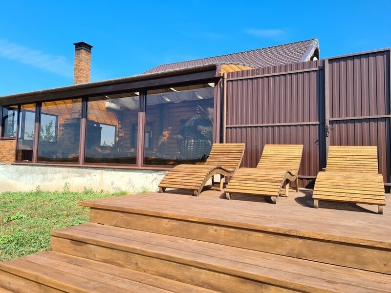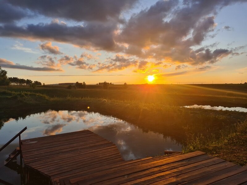Настоящая русская баня на дубовых дровах с панорамным видом на пруд.