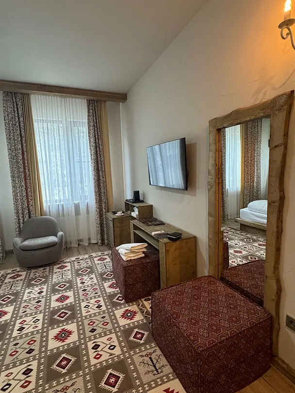 В каждом номере есть кондиционер, холодильник, чайник и приветственный набор. Перекусить можно в ресторане «Аварал», откуда открывается прекрасный вид на горы.