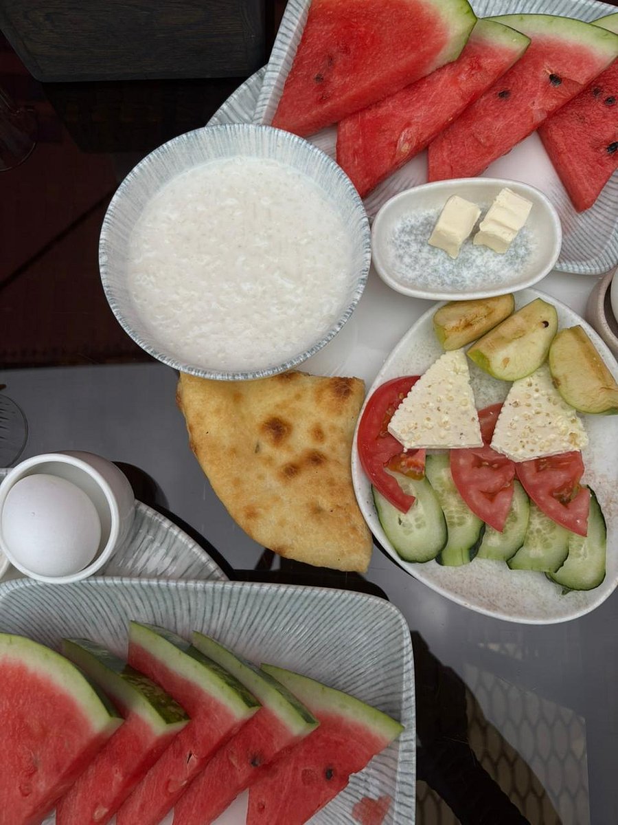 В живописном уголке горного отеля возвышается мельница, где, словно по волшебству, из зерен рождается урбеч. Аромат этой ароматной пасты наполняет воздух, а ее подают в изящные баночки, превращая каждое угощение в изысканный сувенир, который сохраняет вкус Дагестана.