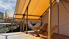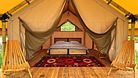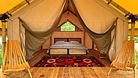 Большой глэмпинг с кондиционером, санузлом и душевой внутри бунгало. Одна большая кровать 160x200 или две односпальных кровати 80x200. Кресло-кровать раскладывается в спальное место 80x200.